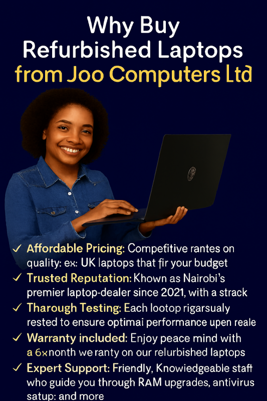 Looking for affordable and reliable refurbished laptops in Kenya? Joo Computers supplies professionally tested Ex-UK laptops ideal for students, businesses, developers, and remote workers across Nairobi and Kenya.